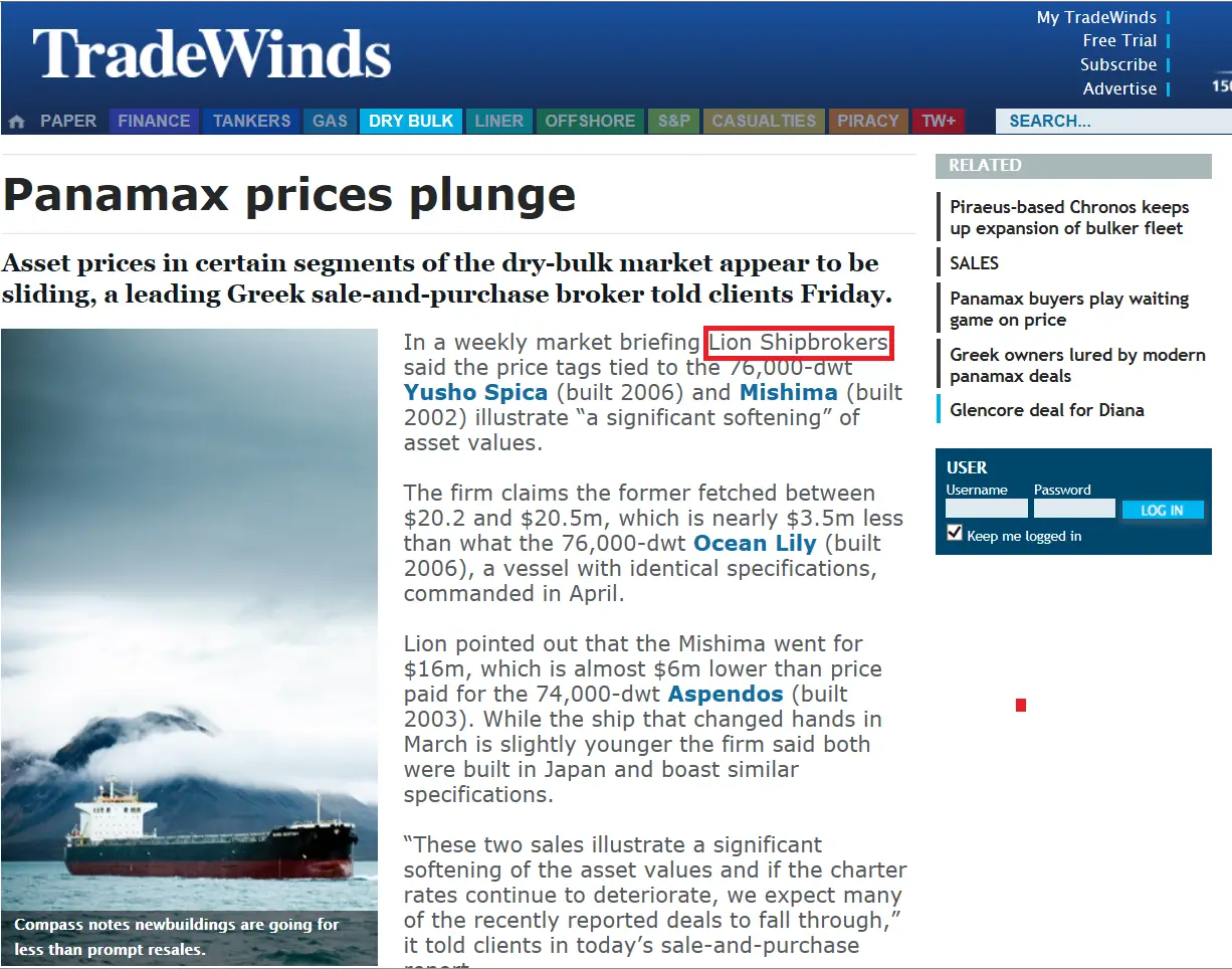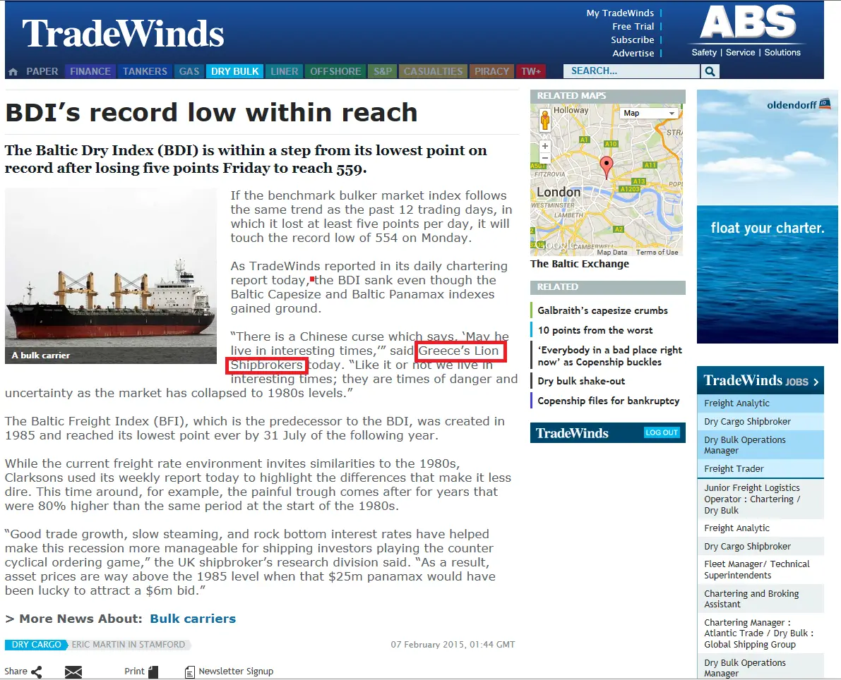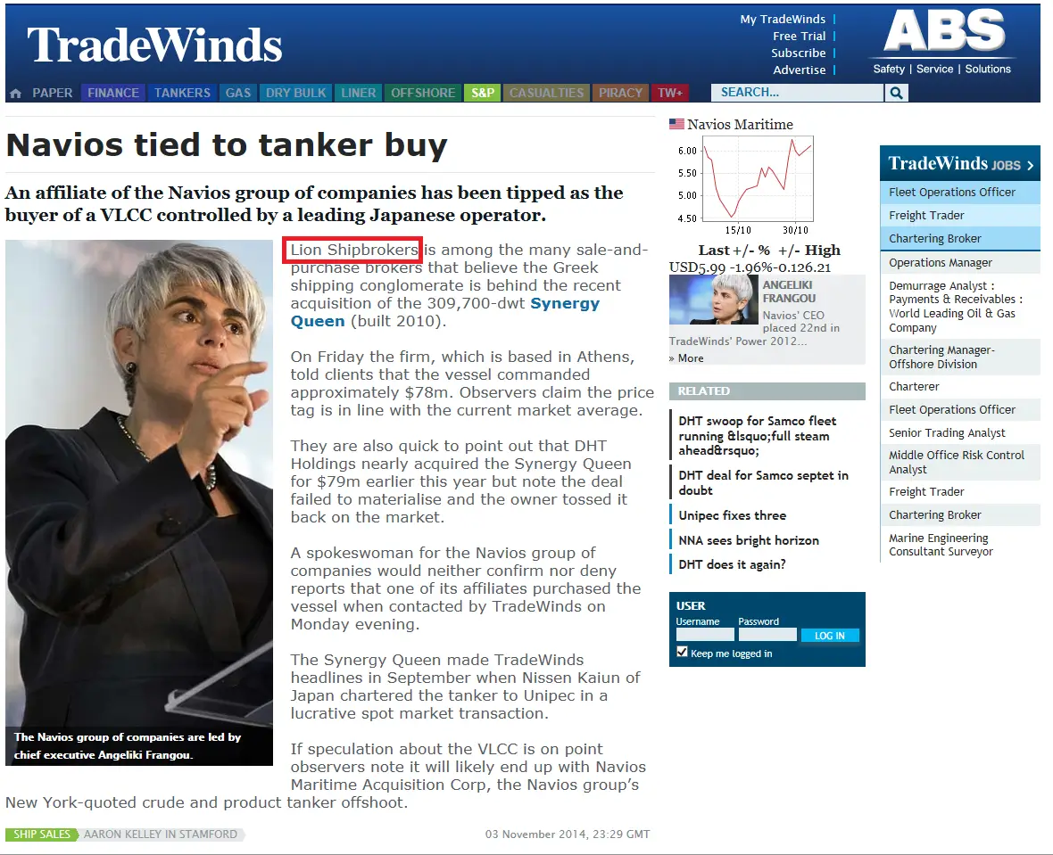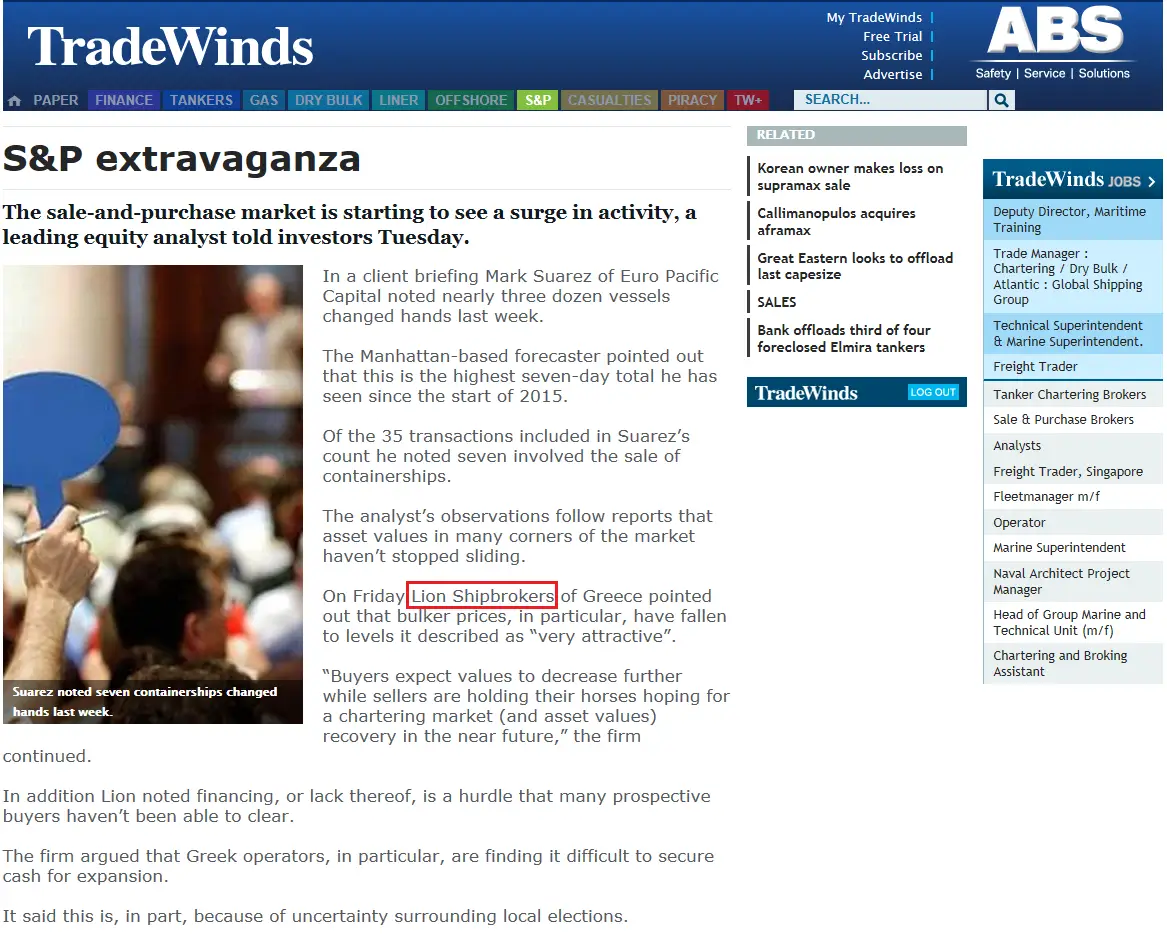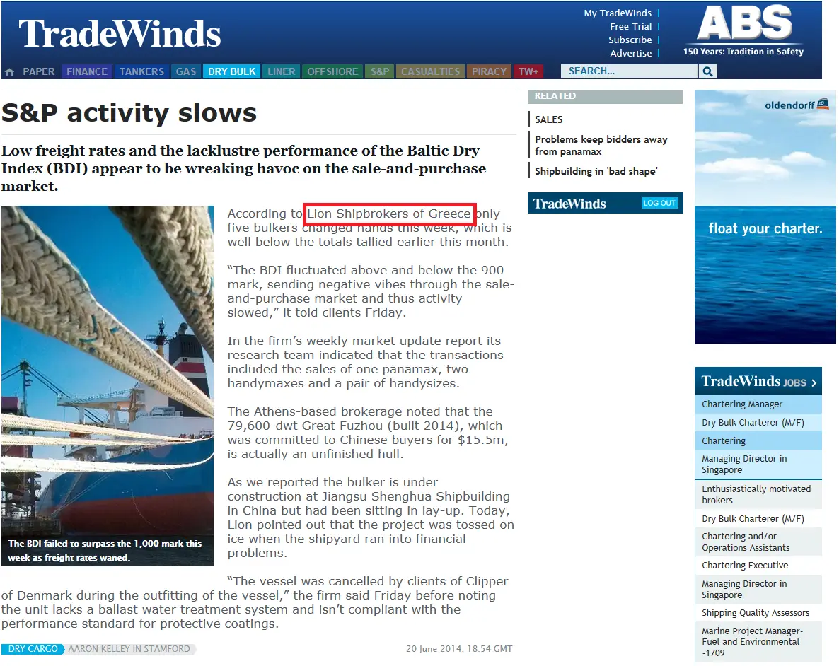 - Trade Winds, 24 June 2011 Lion Shipbroker set up shop in Piraeus