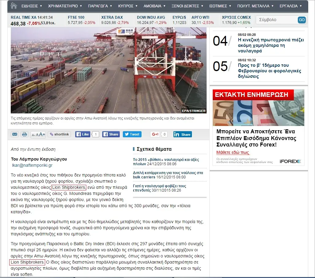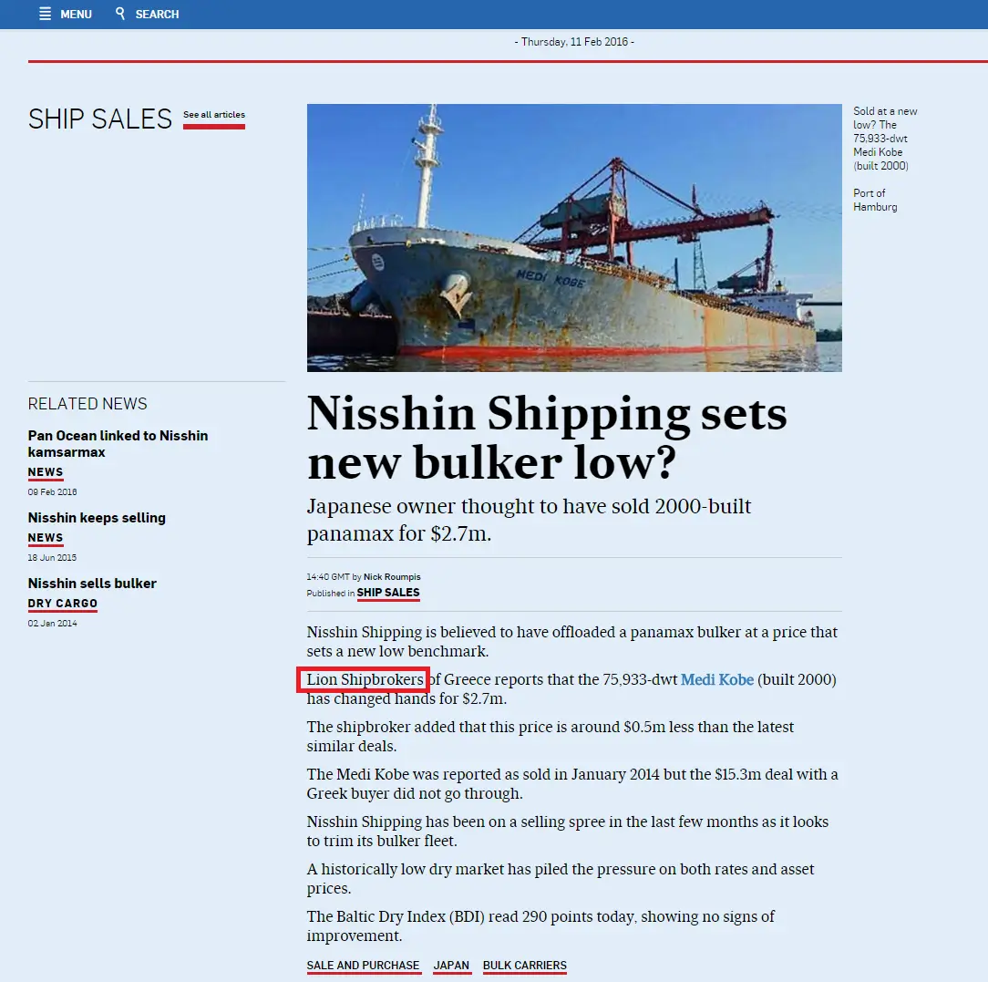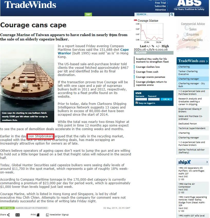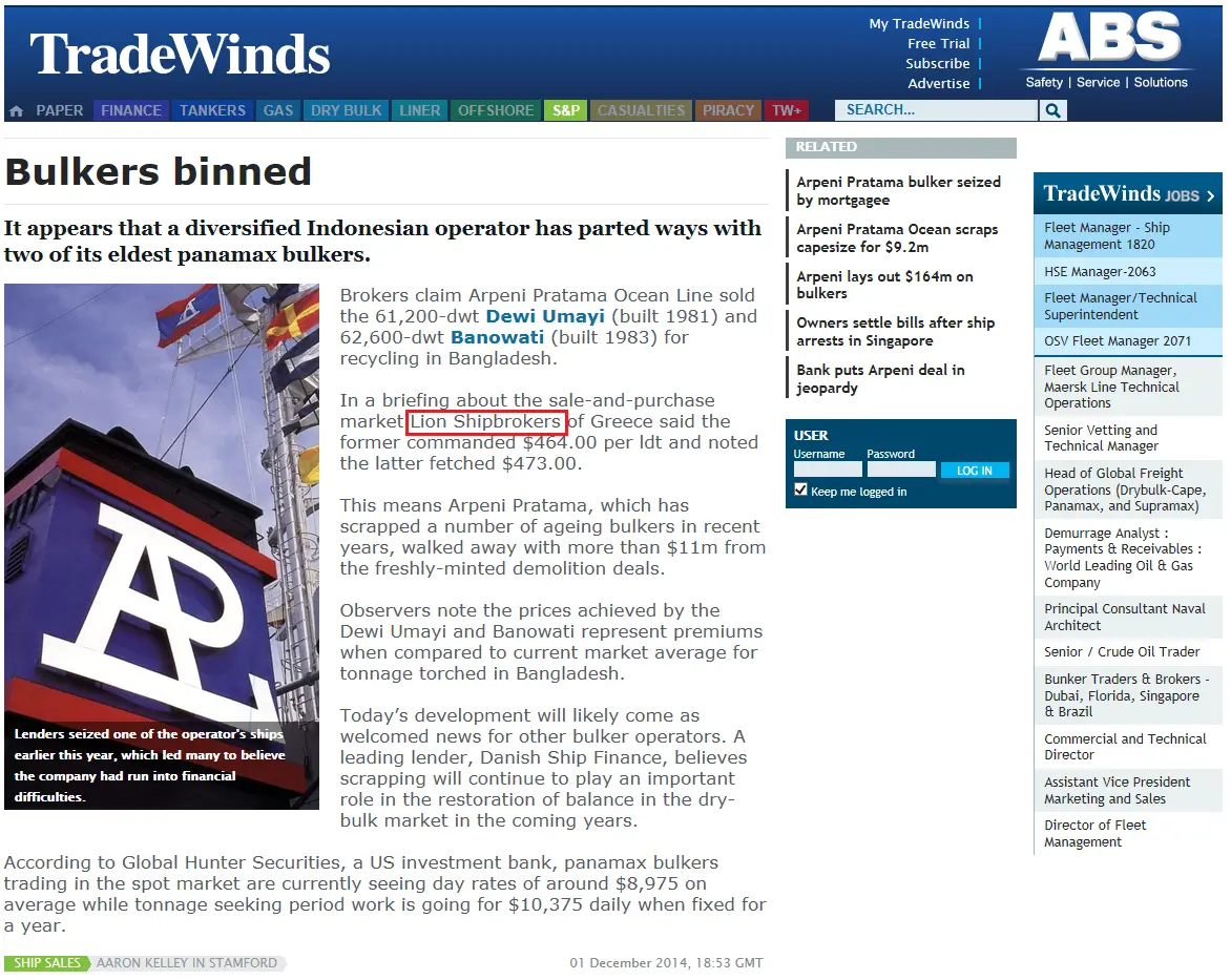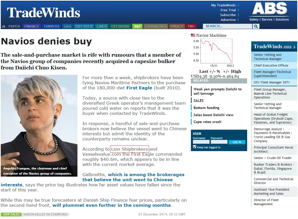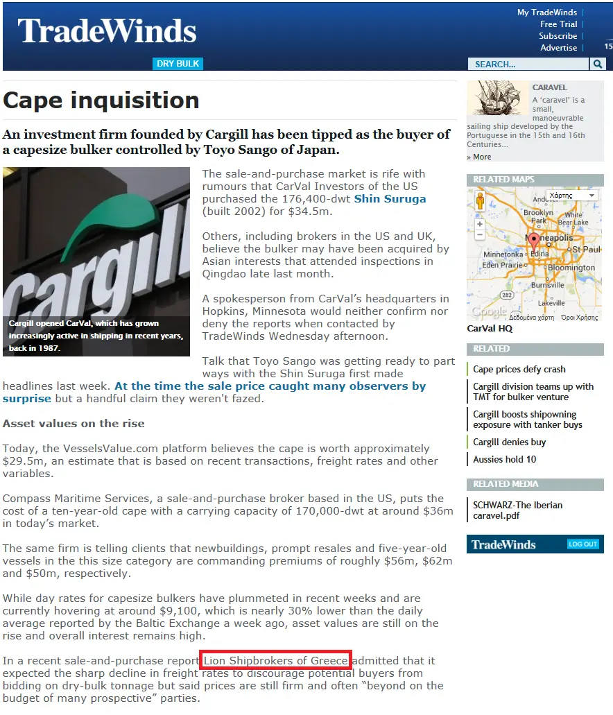 - Trade Winds, 24 June 2011 Lion Shipbroker set up shop in Piraeus