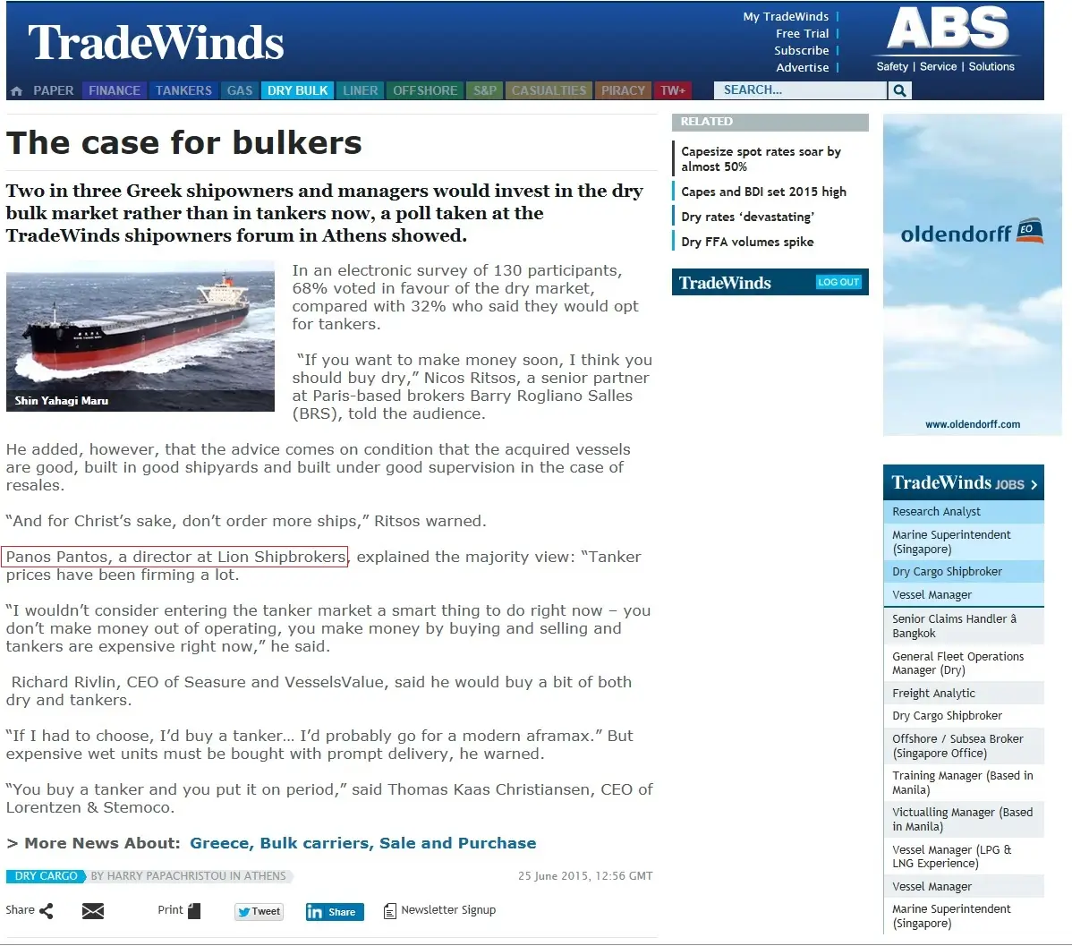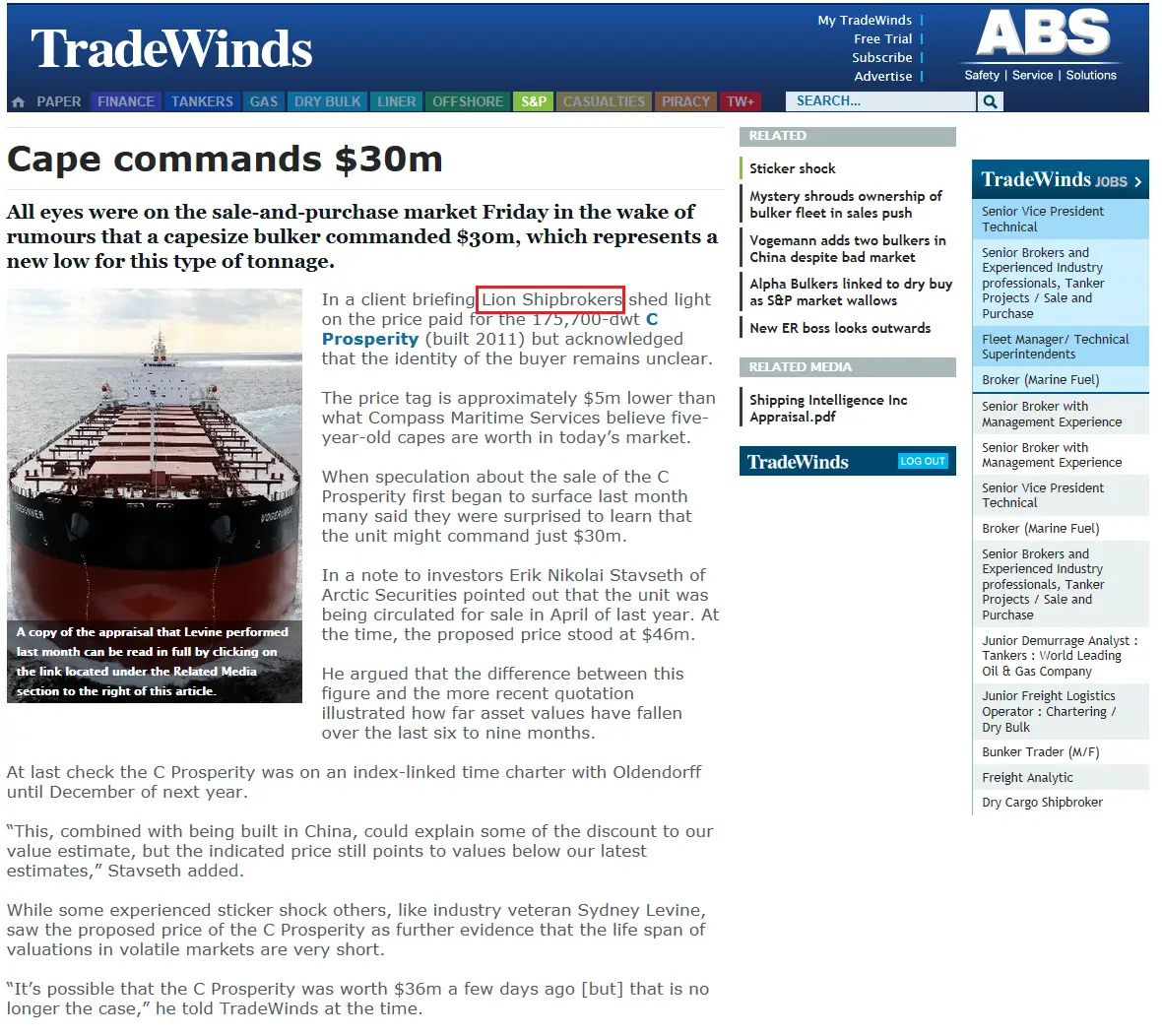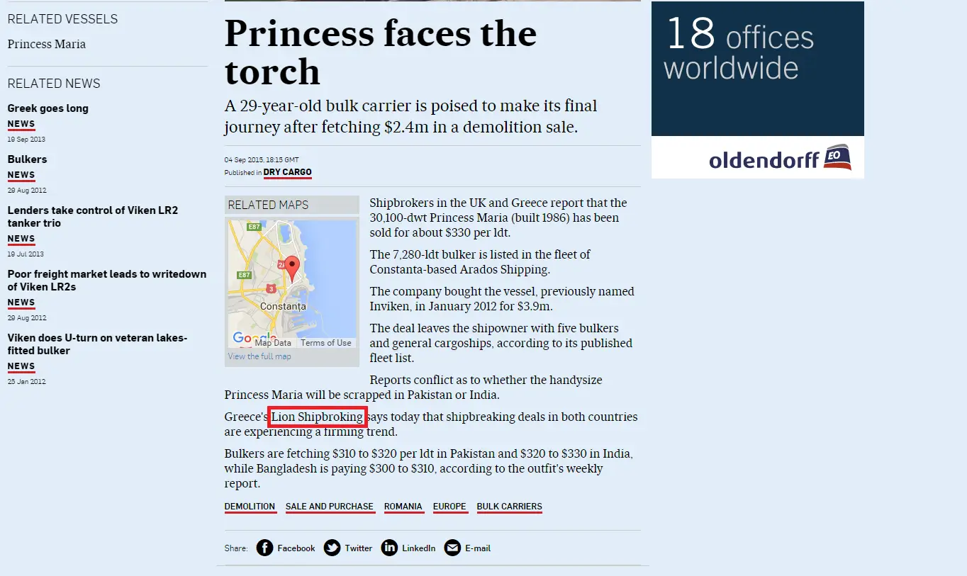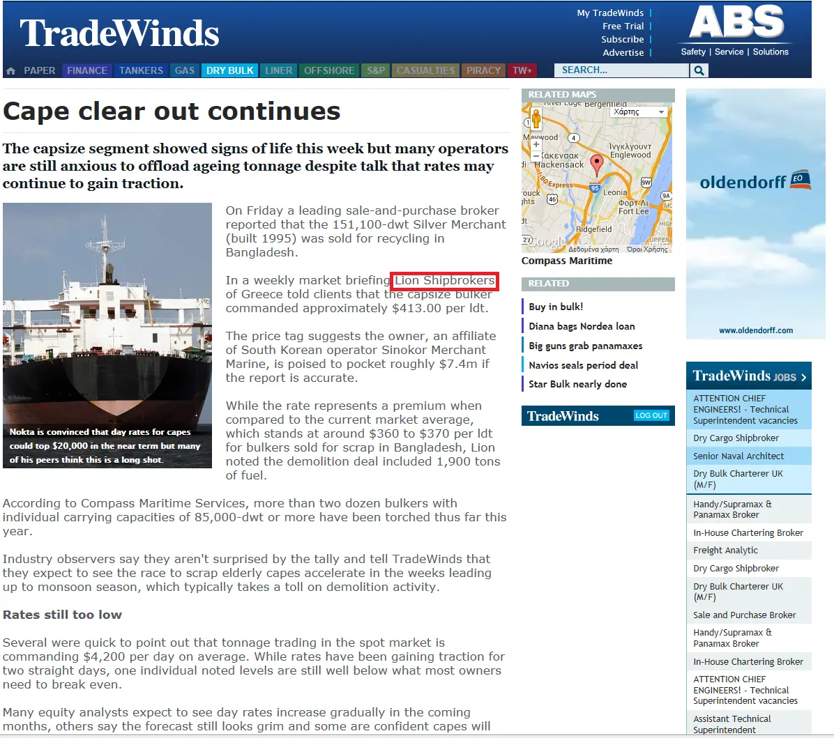 - Trade Winds, 24 June 2011 Lion Shipbroker set up shop in Piraeus