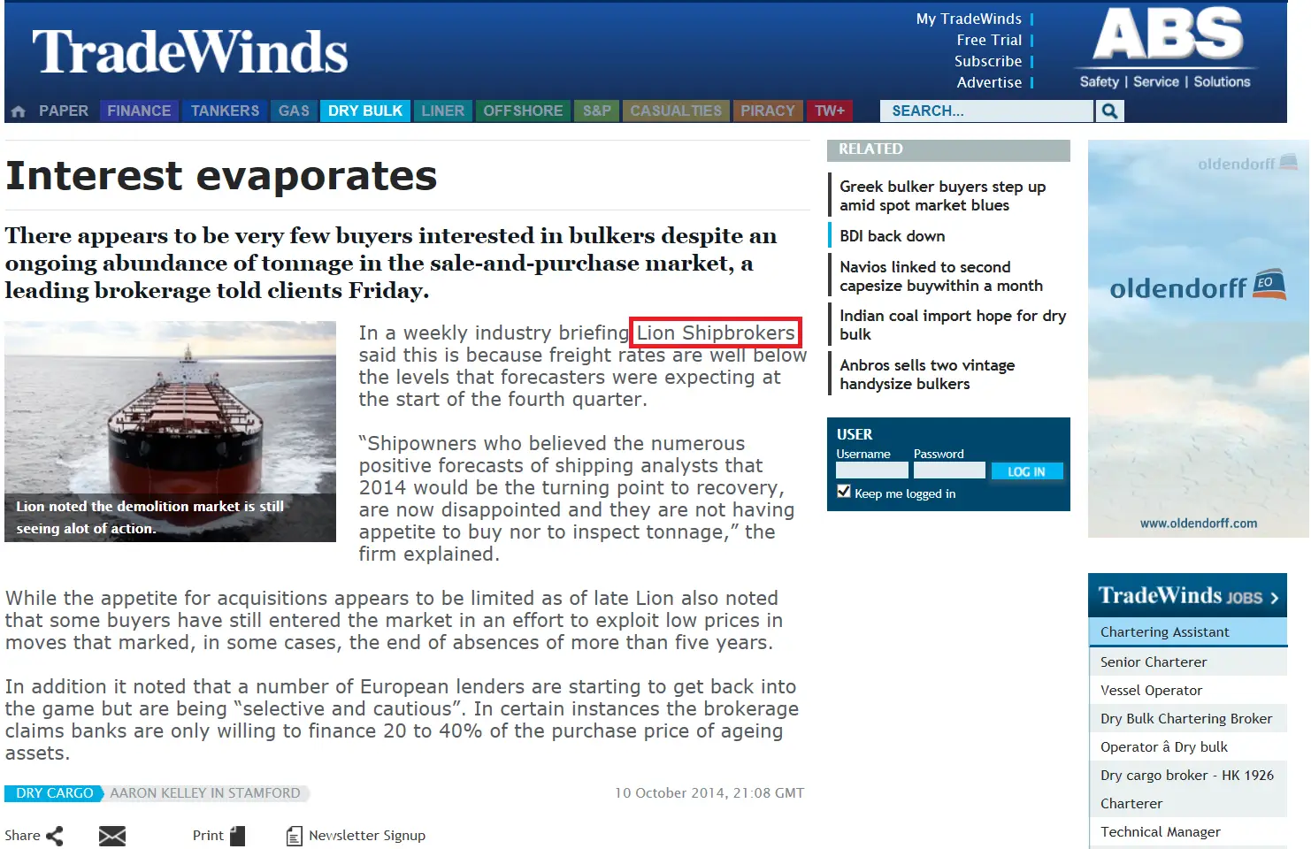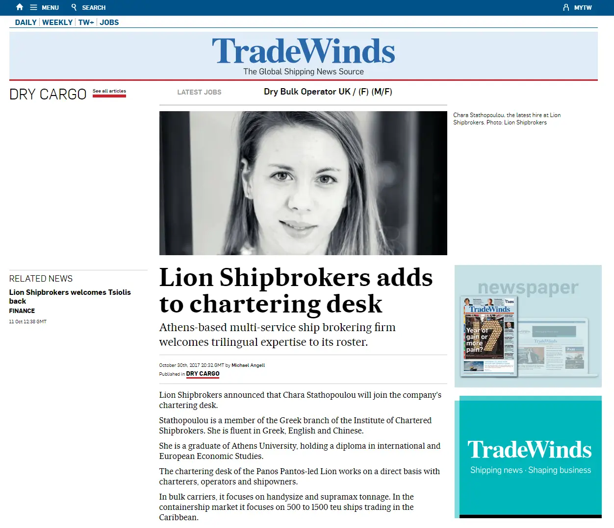 - Tradewinds October 30th 2017 – Lion Shipbrokers adds to chartering desk