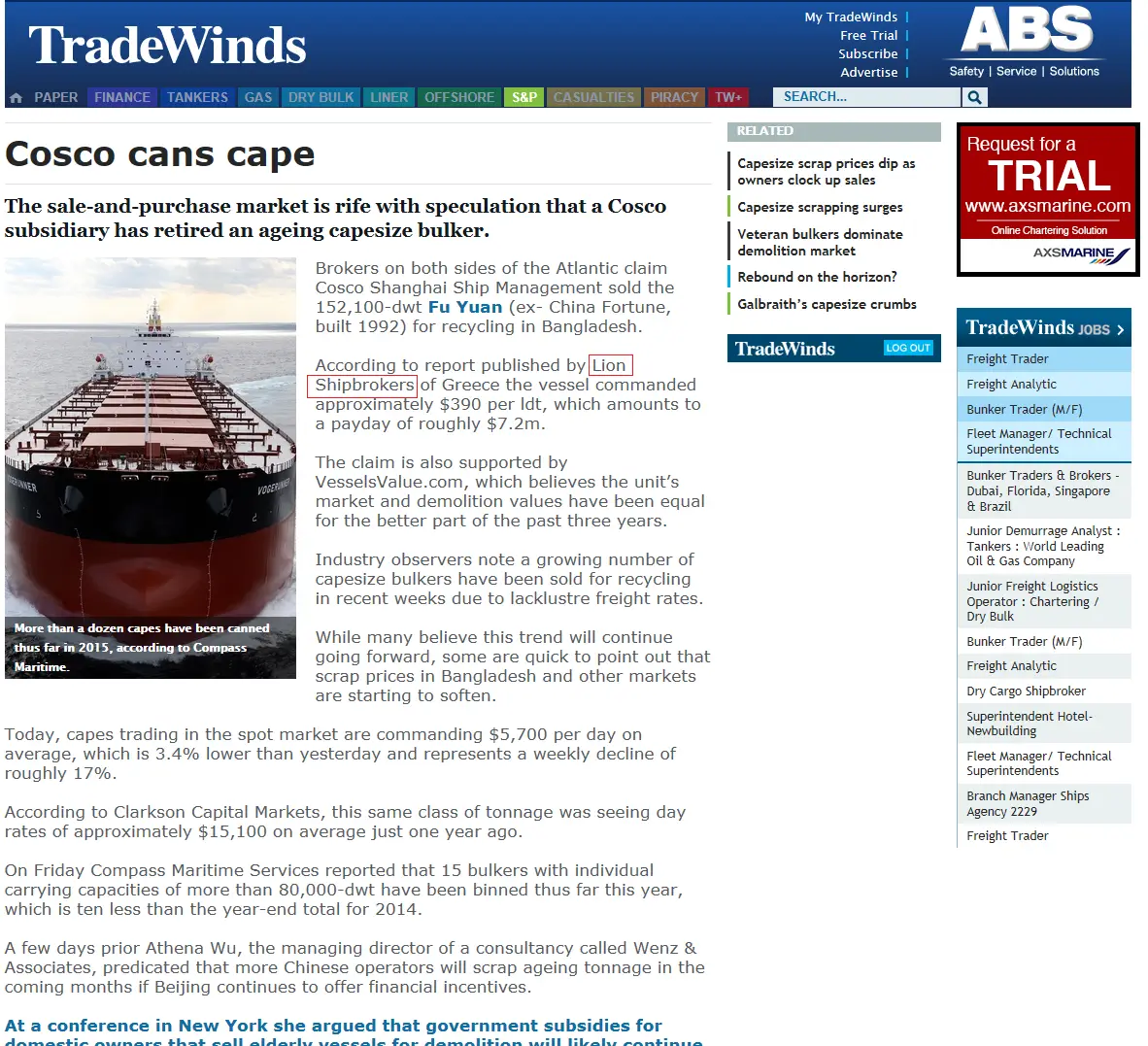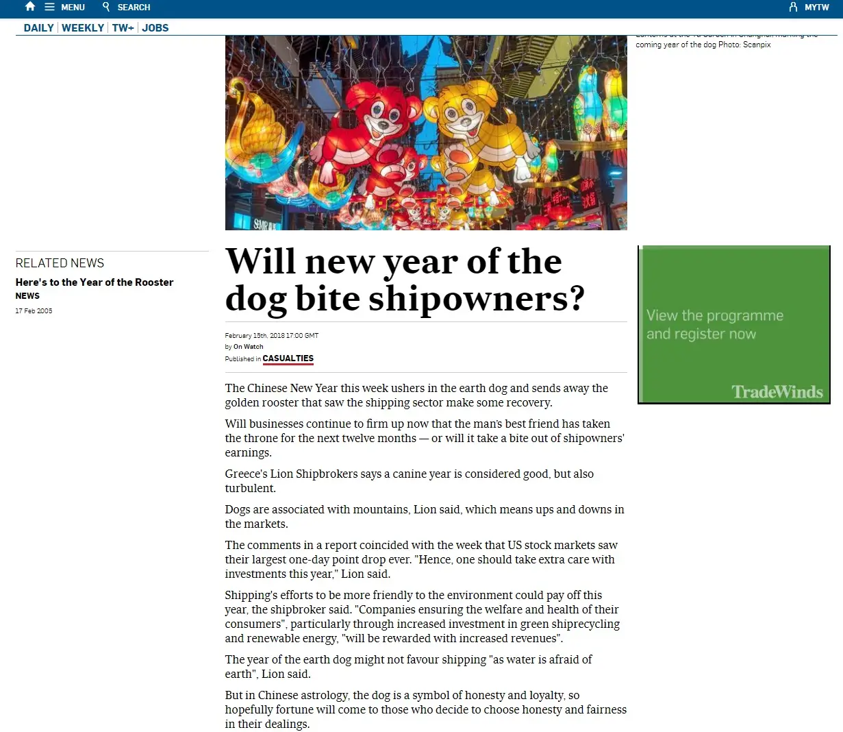 - Tradewinds 15th February 2018 – Will new year of the dog bite shipowners?